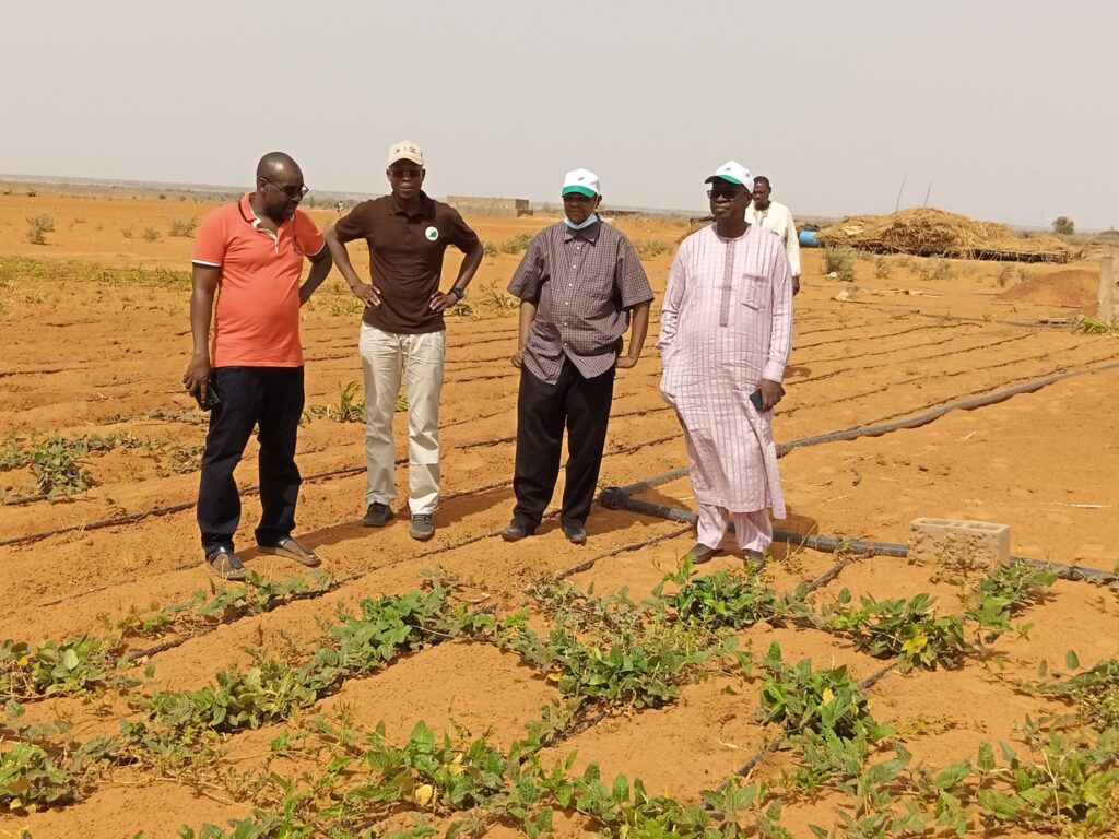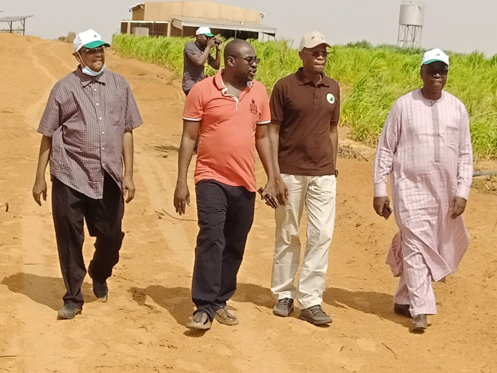Le Coordonnateur national du Projet Intégré de Modernisation de l’Élevage et de l’Agriculture au Niger,(PIMELAN) M Ali Moha et ses spécialistes opérationnels étaient ce matin du Samedi 14 avril 2022 sur le site de l’ensilage Bourgun Zamani de M Bonkano Hamidou Tchiana dans le département de Kollo, région de Tillaberi.Il s’agit pour Ali Moha et ses collaborateurs d’ aller voir l’exploitation d’ un futur partenaire et échanger avec lui de l’opportunité d’ un partenariat en fonction des activités appuyées par le PIMELAN.C’est un site de 82 hectares clôturé dont 30 aménagées qui sont mises en valeur par M Bonkano Hamidou Tchiana avec comme activité principale l’ensilage ou la production de l’alimentation bétail constitué essentiellement des fourrages verts fortement broutee par les animaux car très enrichissant et disposant de confort digestif.Il faut dire que l’investissement fait par M.Tchiana mérite le déplacement de l’équipe du PIMELAN qui a trouvé sur place et de façon désintéressé des machines et de technologies de dernière génération provenant de la Chine et de la Turquie, acquises par le promoteur qui peut etre un bon partenaire du Projet en matière de production et de transformation d’ aliments bétail.Ce promoteur au regard de son engagement et de ses ambitions pour la modernisation de l’élevage mérite beaucoup d’admiration de la part de bailleurs de fonds. En tout cas, le PIMELAN a trouvé en lui un bon partenaire.En plus de la production et de transformation de fourrages, M. Tchiana fait aussi de l’ambouche bovins .En tout cas, le coordonnateur national et son staff etaient très satisfaits de cette visite au niveau du Site de M.Hamidou Tchiana.